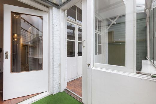 Entree, ruime hal, kamer en suite met schuif deuren voorzien van glas in lood, originele schouw en paneeldeuren, een dichte keuken, een toilet douche combinatie en verder een serre over de volledige breedte van het pand.