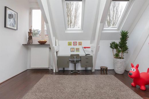 Indeling: afgesloten entree op de bel-etage, ruim gemeenschappelijk trappenhuis (makkelijke trap), entree op de derde verdieping. Hal met garderobe en toilet welke toegang geeft tot de royale aan de achterkant gelegen living met dakterras en prachtig uitzicht over de binnentuinen. Aan de voorzijde de half open keuken en uiterst ruime slaap- cq studeerkamer. Via een interne trap bereikt u de 4e verdieping met overloop, twee slaapkamers en een badkamer met ligbad, separate douche en tweede toilet. De 4e en tevens bovenste verdieping (geen bovenburen) is aan weerszijden voorzien van bovenramen over de hele lengte waardoor deze verdieping een unieke lichtinval heeft. Tot slot is de overloop is voorzien van een praktische bergruimte.